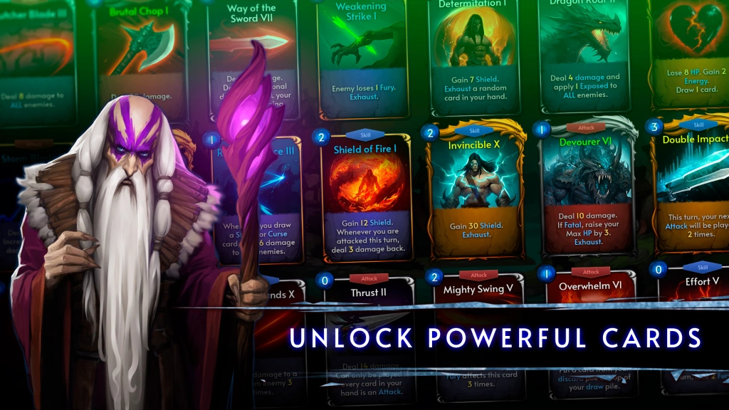 As you play, you’ll level up your character, get power-ups, and improve your cards. Your ability to handle unexpected challenges and more powerful foes will improve in direct proportion to your level of strength.