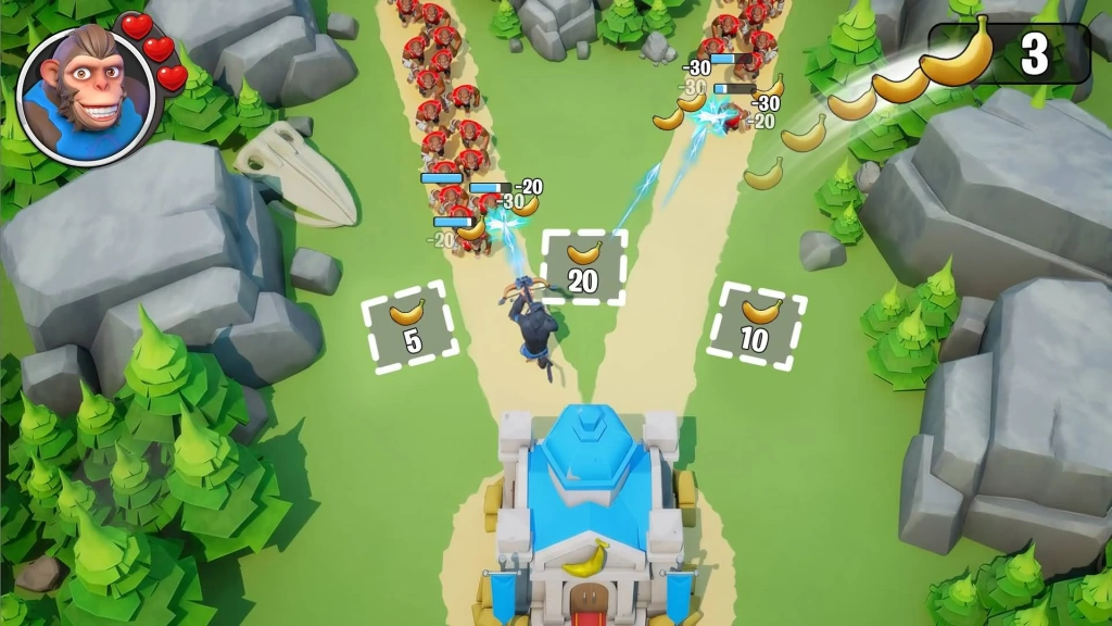 To rule the monkey world, expand your outpost. Build an army and develop the strongest monkeys. Make plans to outperform the other Clans in the Rocket Race.