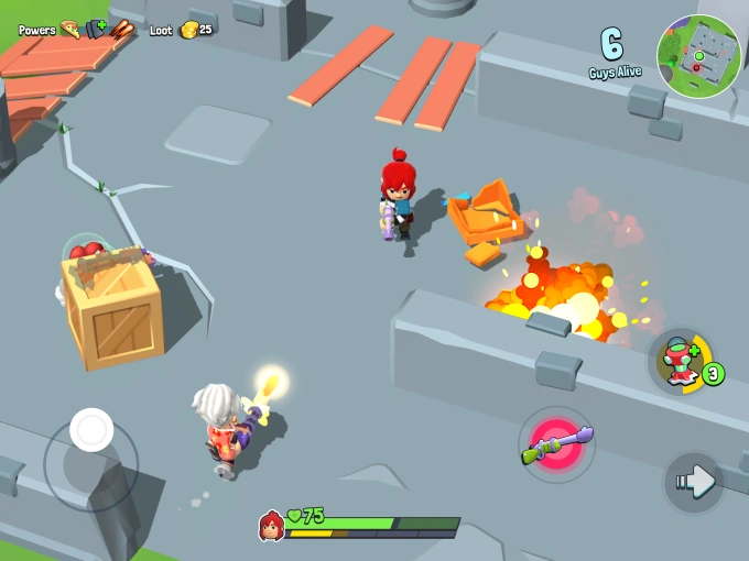 A fast and fun top-down PvP shooter where every match lasts just a few minutes. In this open arena shooter, collect power-ups, outmaneuver enemies, and ultimately survive. Fight solo or in duos mode.