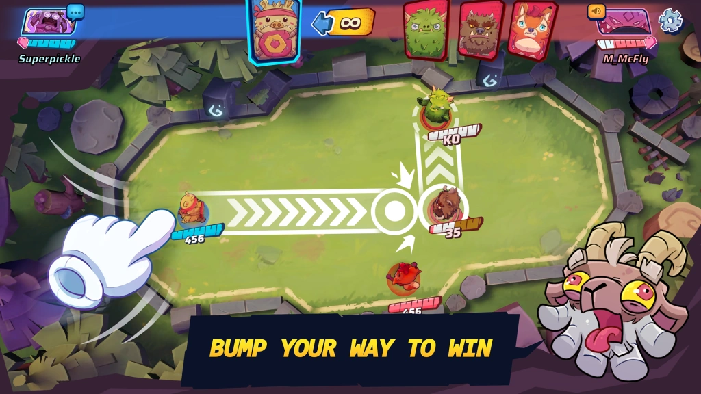 Arena brawler Beast Bumpers combines physics-based action, turn-based strategy, and competitive multiplayer in a skill-based experience. Get to the top of the world rankings by outwitting your opponents, lining up precise shots, and unleashing explosive combinations.