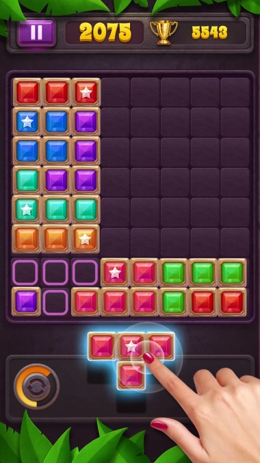A simple block puzzle game. The objective is to use jewel blocks to clear the entire board in order to earn worthwhile bonuses.