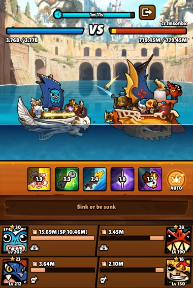 • Effortless Auto-Battler: Your pirate crew battles intelligently without you, bringing loads of experience and riches.