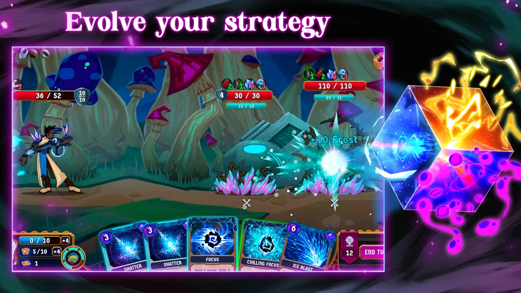 Every choice you make has an impact on the battle thanks to special status bars like Arcane, Frost, and Shock as well as a range of buffs and debuffs. Become a true strategist by improving your build with each draw.