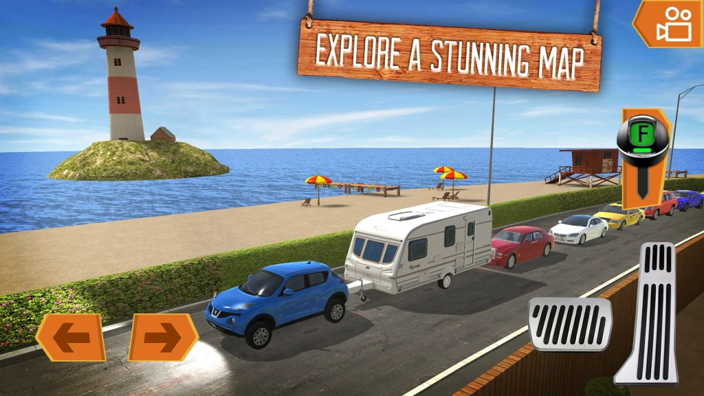 The game offers a variety of vehicles, including campers, minibuses, caravans, and boat trailers. Each presents unique difficulties that require careful attention to detail. They are meticulously designed to be as close to real cars as possible. Acquire the ability to drive each of them.