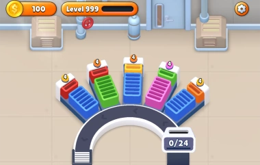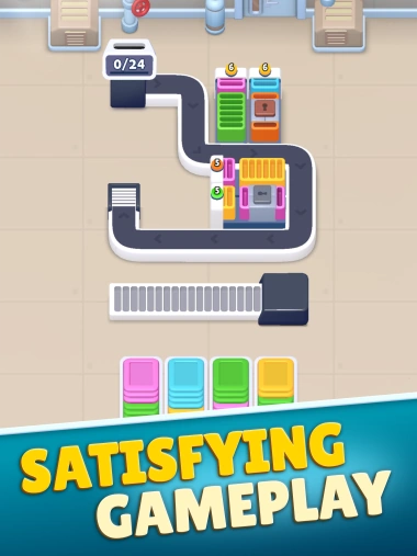 The objective of this logic puzzle is to arrange the chaos. Fill the shipping boxes, match the colors, and send the cards to the conveyor.