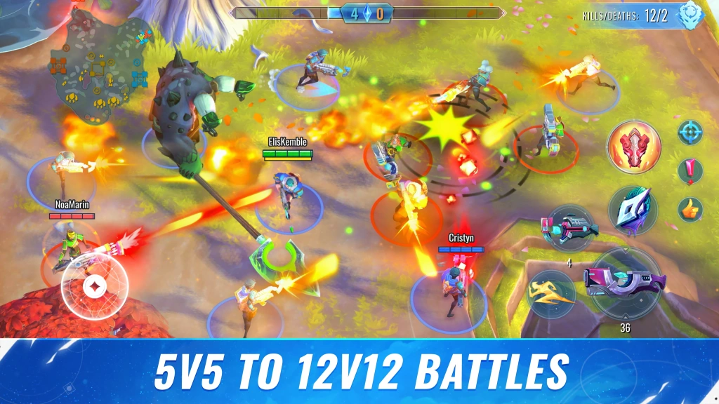 Participate in games with your friends. Join forces, plot your move, and win the war. 5v5 to 12v12 battles.