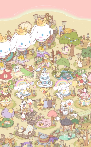 An idle relaxing cat game. The cute Cinnamoroll, Pompompurin, and Pochacco have arrived to play in the serene forest where cats boil their soup.