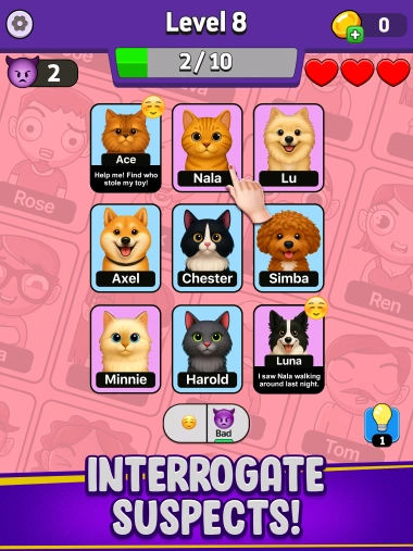 Discover the excitement of tracking down “the one” who betrayed, handling the fallout, and delving into romantic, gossip-filled character stories. Immersion music and visuals accompany each case, drawing you further into the mystery.
