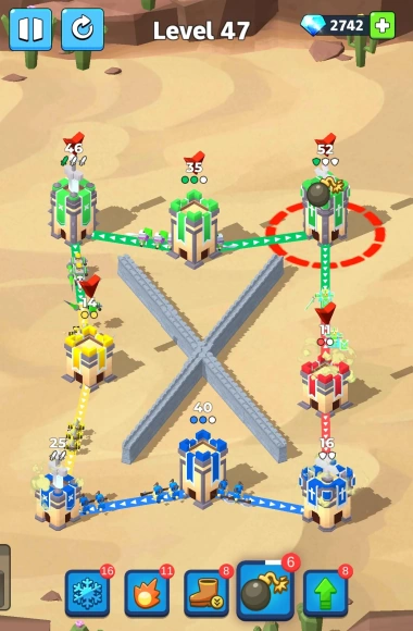 Use your finger swipes to link towers together. Assume control of towers of different hues and direct your blue soldiers to protect your own.