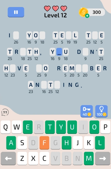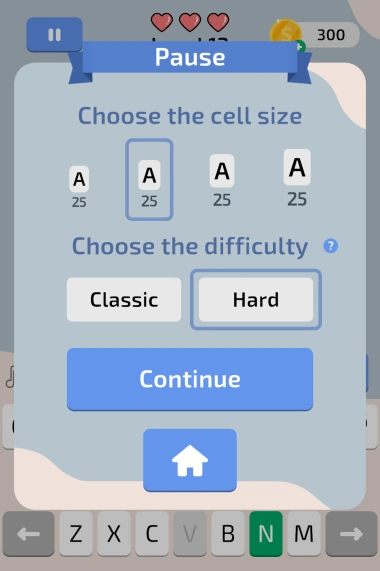 The game has an error system to enhance both your logical thinking and gaming. In each stage you can only make 3 faults. This is done in order to prevent sifting through all the letters.