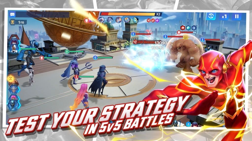 To defeat every opponent, unleash Deathstroke’s deadly strategies, Lex Luthor’s advanced weapons, and Sinestro’s terror constructs. Collect, train, and develop your squad of heroes and villains into an invincible force, unleash spectacular ultimates to shatter your opponents, and rescue Earth.