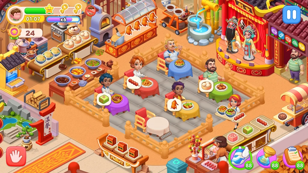 You can keep the food frenzy going by upgrading your kitchen, hiring renowned chefs, and unlocking hundreds of recipes.
