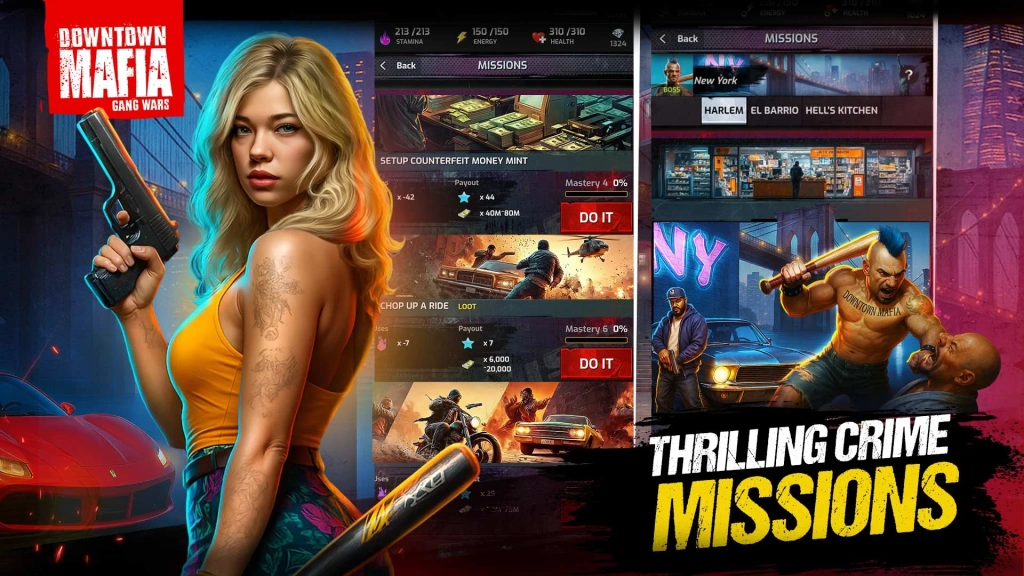 To participate in gang wars, death matches, and turf takeovers, join or form gangs. Give your gang weapons so they can engage in real-time combat for supremacy.