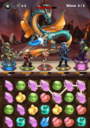 The effectiveness of a team depends on its battle strategy. In order to defeat the dragons and the minion beasts that serve them, you must find the best diamond match. Select the appropriate hunters for your mission, give them strong weapons, and engage the ferocious dragons in combat.