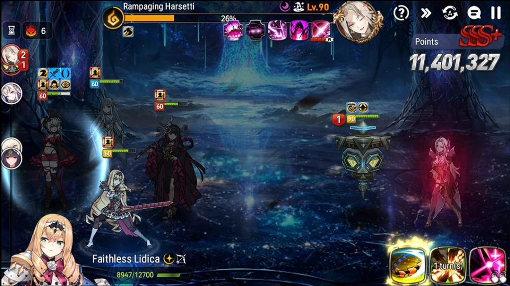 A turn-based RPG. Each character has 3 attack skills. A total of 4 characters make up a team for PvP or PvE.