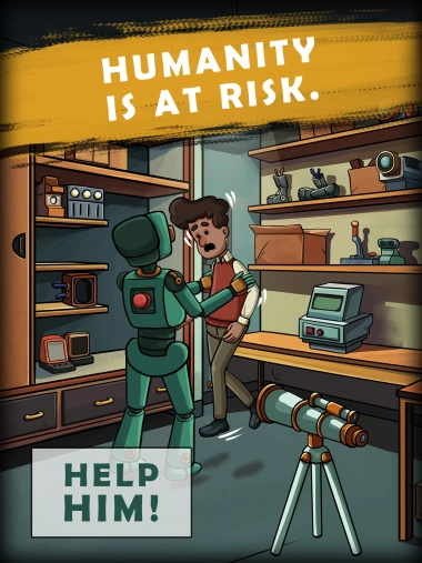 Mystery and adventure clash as tensions rise. Which side will you choose: humanity or the machines? Many different plot twists and turns can result from the decisions you make. Will you become a hero or a traitor? Can you solve the mystery puzzle and escape?