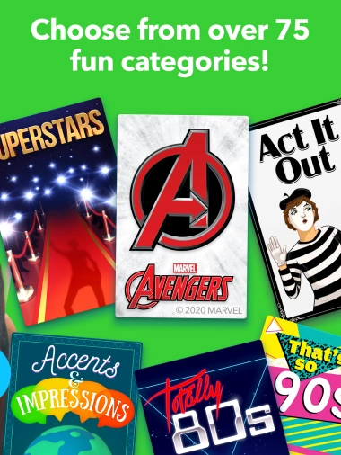You can make your own category or guess the word in one of the well-liked categories, which include entertaining game decks like Harry Potter, Friends, and Marvel.