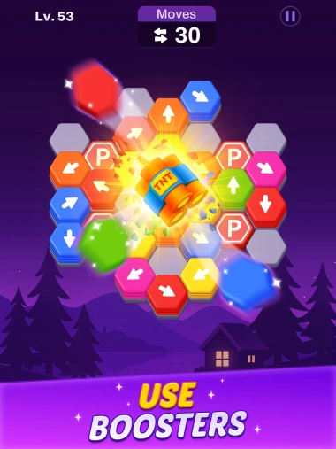 Hexout provides strong weapons, such as bombs, hammers, and more movements, to help players overcome challenging puzzles and obstacles. You can use these tools to break through obstacles, get more precise instructions, and ease your way through challenging levels.