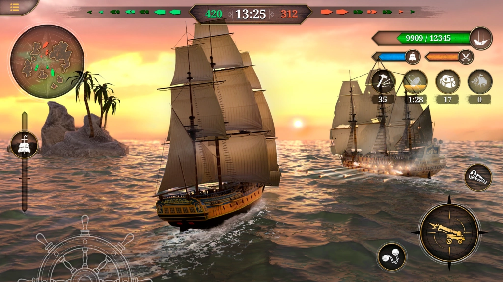 Online PvP 5×5 team naval fights. Sink all your opponent’s ships at any cost and sail off into the sunset.