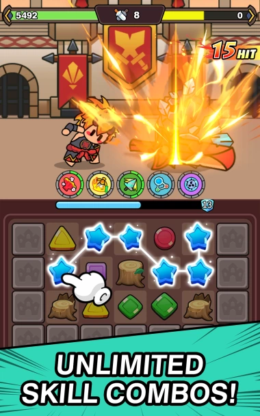 Link scattered elemental blocks on the board by connecting and unleashing skills. Use random roguelike skills to deliver a devastating blow to the adversary.