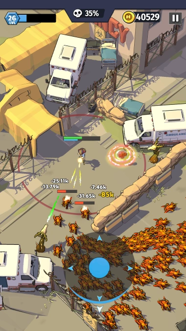 Enjoy the game with auto-aim shooting and simple one-handed controls. Hordes of zombies may be readily eliminated at any time.