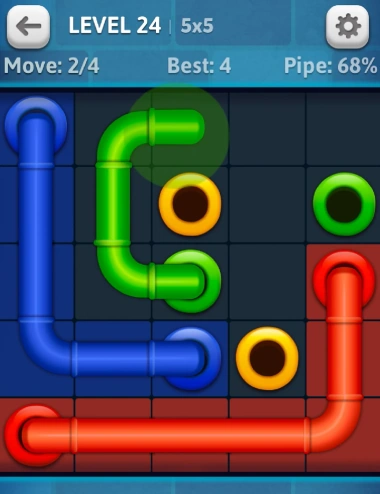 To fill the board, connect the pipes of the same color without overlapping them. Unlock new puzzles by earning stars.