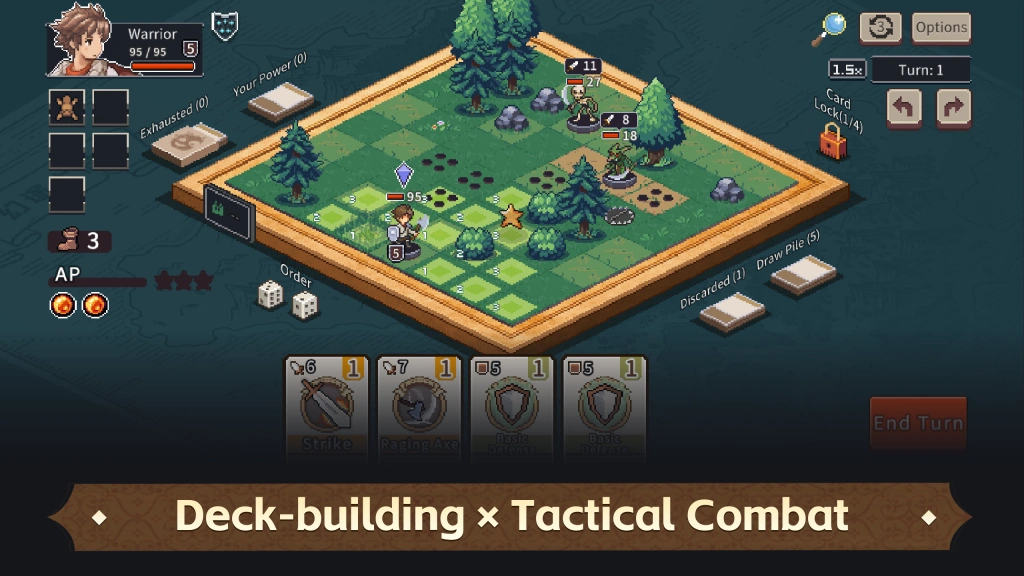 A roguelite game that combines strategic grid-based combat with deck-building in a fresh way. A new strategic angle is brought forth by the innovative multi-card playing features.