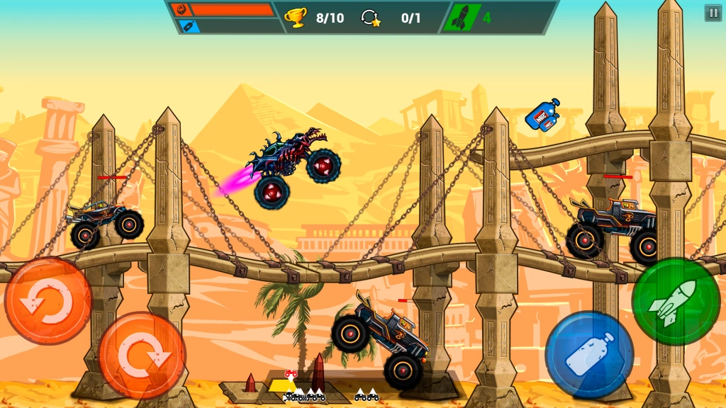 Choose your truck, equip it with rockets, and compete against the world’s toughest off-road drivers. As you ascend the hill, use nitro and turbo boosts to accelerate your legendary vehicle.