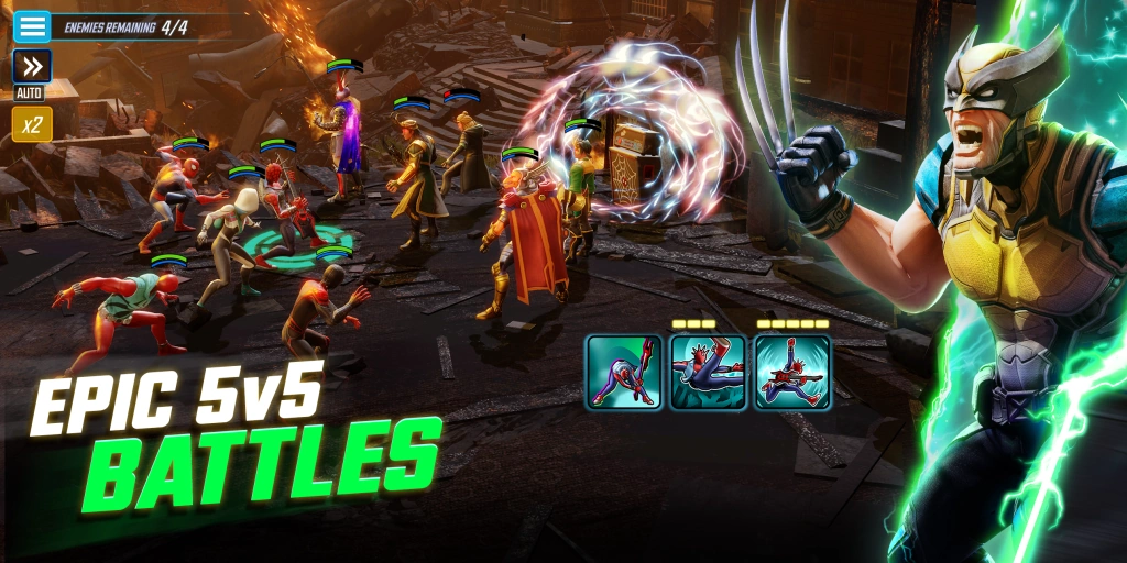 Who you bring to the battle counts in this super hero game. Pair up particular heroes and villains in squads to develop synergies and take out adversaries. To defeat the deadliest villains in the Marvel Universe, use RPG fighting strategies in 5v5 confrontations.