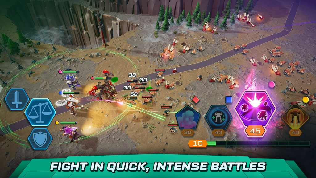 Build an army of unique robots that can adapt to your play style. Each unit may be upgraded into a formidable mega mech battle machine by adding strong armaments such as missile launchers and shields. In exciting mech warfare situations, use your unique configuration to dominate every fight.