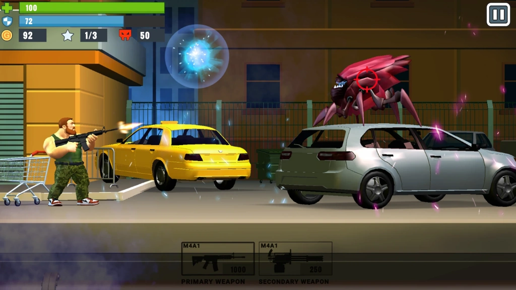 • Play intense side-scrolling battle with autofire and auto-aiming in this modern shoot ’em up action game.
