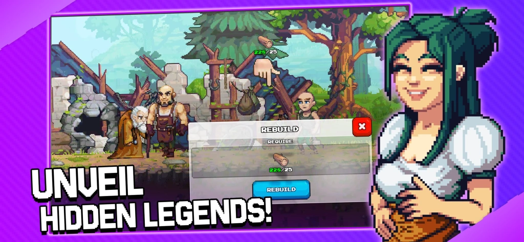 A throwback idle role-playing game (RPG) and clicker game, you may explore a pixel world full with stories, missions, fights, and adventures while mining, building, and fighting.