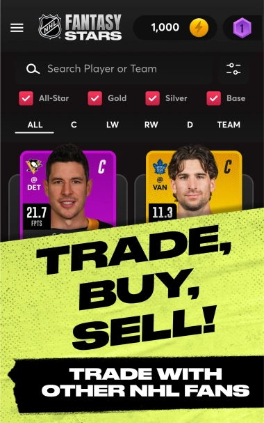 This one-of-a-kind mobile sports game showcases and collects all of the NHL’s stars—centers, wings, defensemen, and teams—as players tear open packs to acquire and unlock legendary players, who contribute to their team’s point total based on their actual performance in NHL games.