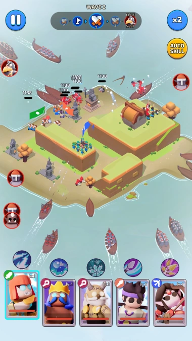 Equip and train formidable Viking warriors. Effortless, smooth, and strategically placed deployment. Dynamic battle skill casting: manual and auto.