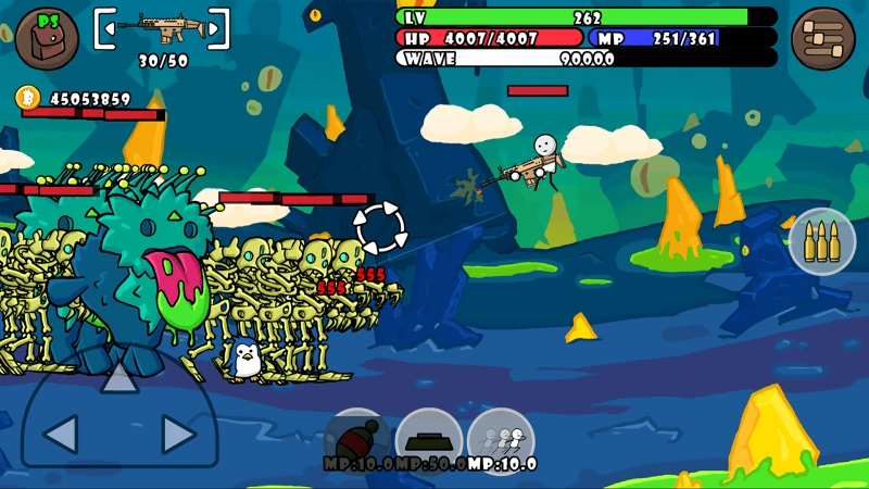 Each stickman must repel the dangerous monsters that are continuously attacking him when the battle starts. This is an extremely difficult battle all the time, but you can increase the power of your stickman by using a variety of skills.