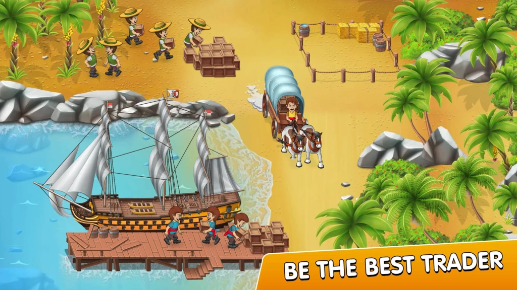Gather fresh produce and crops to trade. Expand your farm, use farmers and horses to increase output, or delegate it to managers.