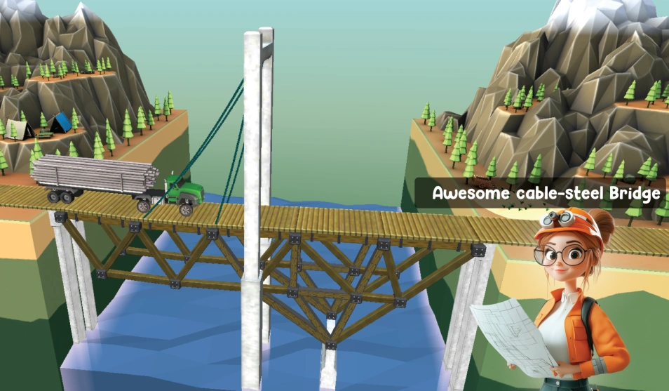 Let your creativity go wild as you construct complex and effective bridges using a range of materials at your disposal, such as steel, wood, and steel ropes.