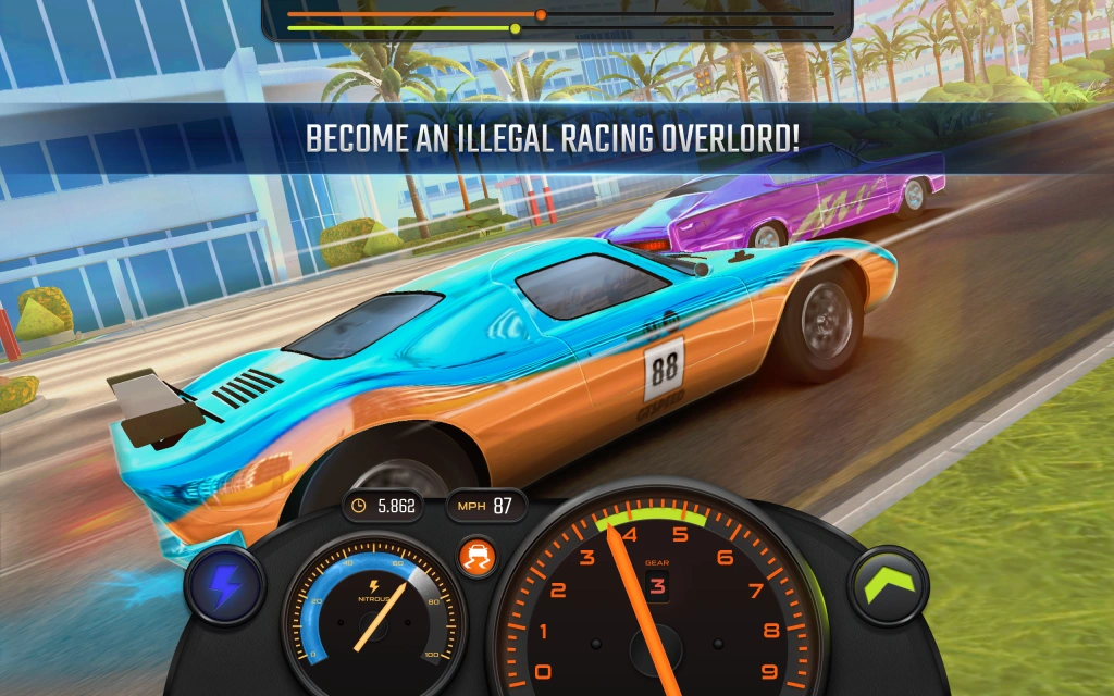 Competition in the demanding drag races is fierce, and winning depends on your exceptional timing. Get behind the wheel and race against other drivers as you advance in your career. Be quick and shift gears when it’s appropriate.