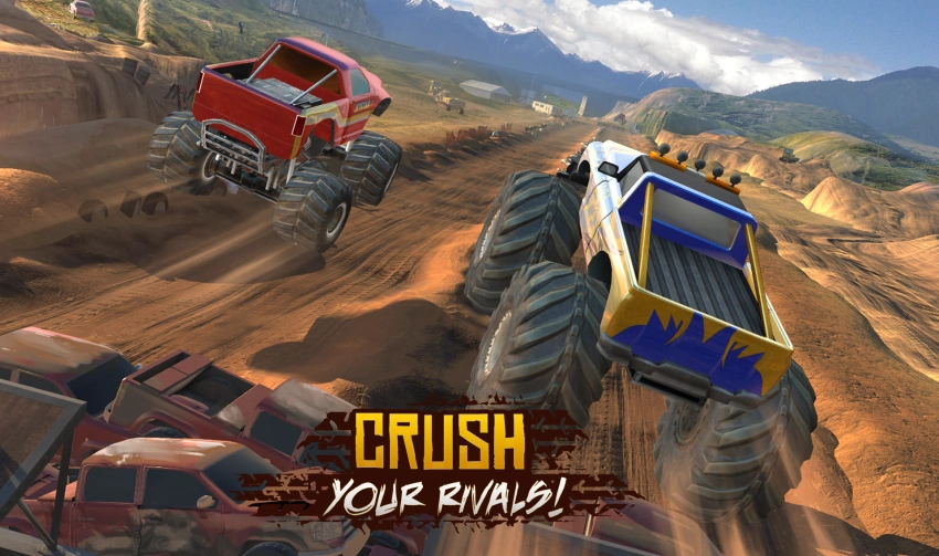 In intense head-to-head fire-breathing monster truck races, outperform your opponents.