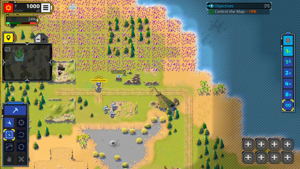 Building specialized structures and troops is made possible by a tech tree and research options. It is possible to steal enemy technology with a Tech Snatcher.