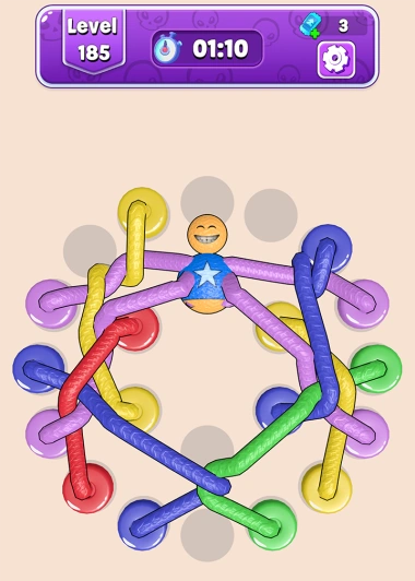 – Master the skill of deftly maneuvering twisted ropes around set pins and unwinding each tangle—the strategic pin placement game.