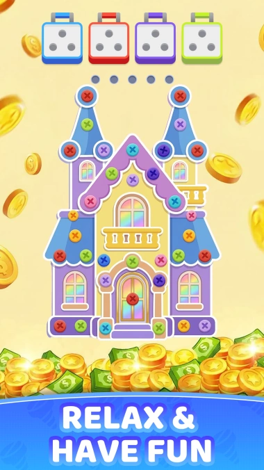 Screws can be tapped, dragged, and snapped into the corresponding colored boxes. To solve challenging puzzles in each level, make use of useful props. Complete the level when all screws are correctly sorted.