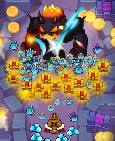 Call upon a varied cast of legendary figures, such as the formidable Queen Elsa, the enchanted WindChant, and the sage Panda Monk. To battle alongside your slimes and change the course of the conflict, each hero has special skills.