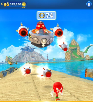 The legendary Sonic world meets the endless runner genre in Sonic Dash. Featuring Sonic-inspired track design reminiscent of legendary stages like Green Hill Zone, complete with corkscrews and loop de loops. Run across the sand in the Beach Zone or soar through the sky in the Sky Sanctuary Zone—both of which offer new levels to experience.
