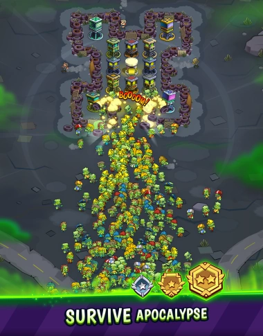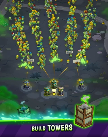 You begin modestly, with one or two small towers. But before long, you’ll be constructing traps that turn zombies into puddles of slime, towers equipped with blasters, lasers, and other weapons, walls that block and bash zombies, and shelters to keep your people safe.