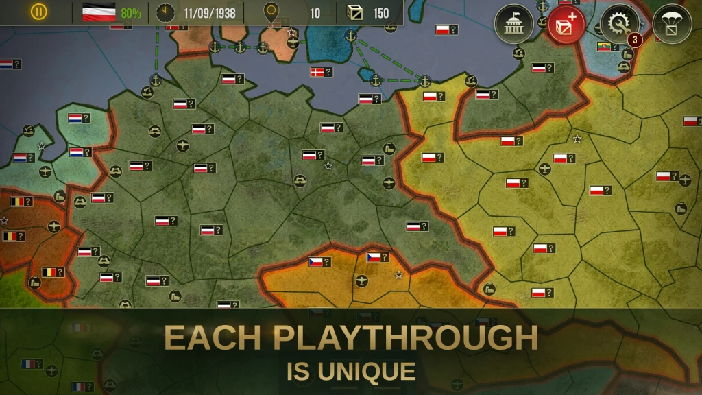 - Choose a strategy for waging war, such as rapid advancements, attrition, or political pressure, and observe how each changes World War 2 and the global conflict.