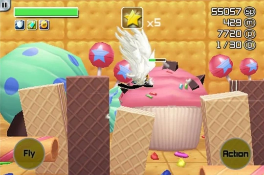 Use leaping, soaring, and smashing to weave your way past the obstacles. Simple and straightforward interface; only two buttons are required for operation.