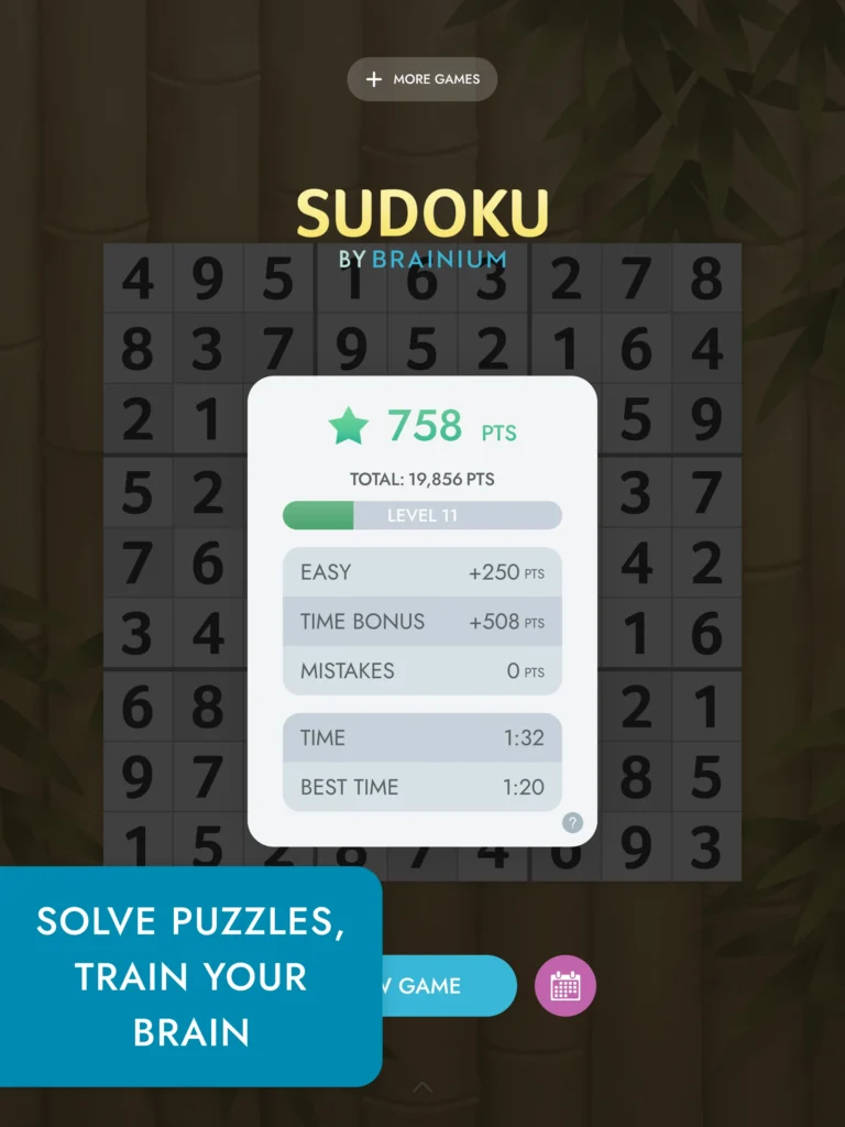 Playing Sudoku’s regular Puzzles is a simple way to start and maintain a regular routine of mental training that will keep your mind relaxed and alert. Use the in-game statistics to keep tabs on your progress and get cool rewards as you go.