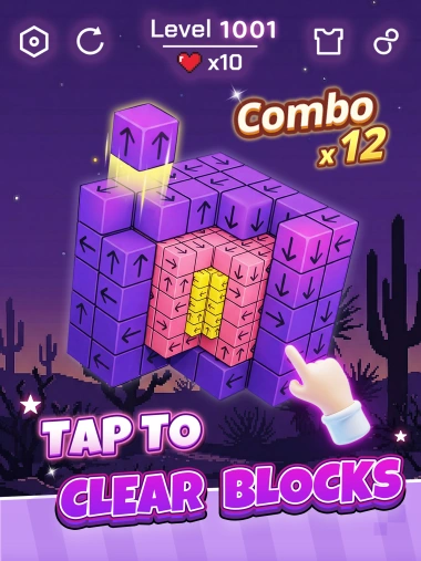 You can tap the cubes with the help of the bomb props if you get stuck in the blocks. A level is considered complete when all the squares have been tapped away. You can test your skills on any one of the tens of thousands of levels.