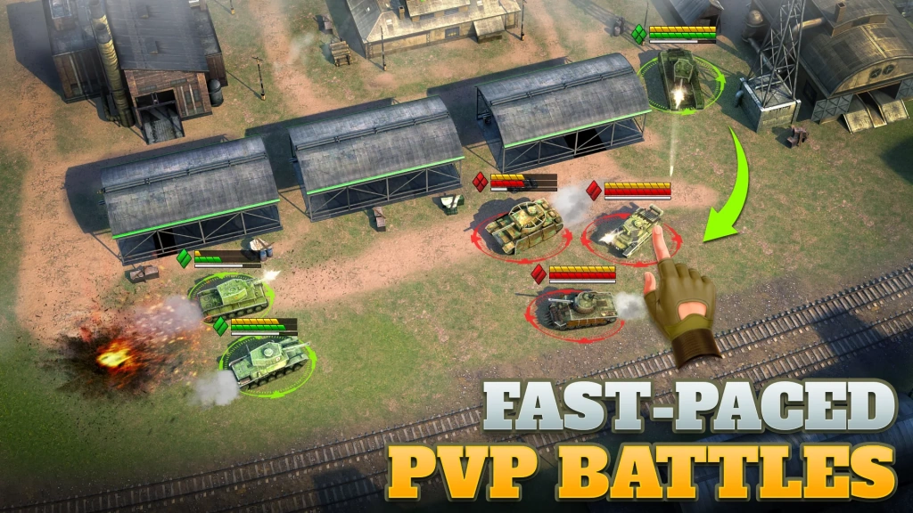 Develop and test your own tactical plans, and demonstrate your commander skills by taking on players from around the globe in PvP mode. Engage in quick battles that last only a few minutes while still allowing you to employ a tactical strategy.